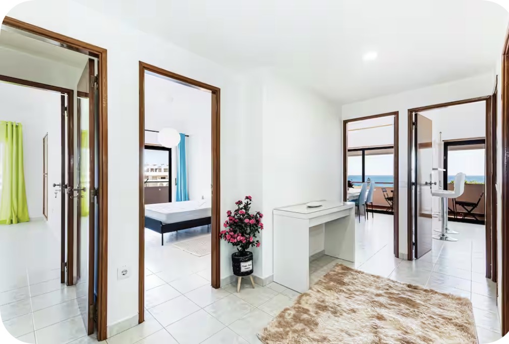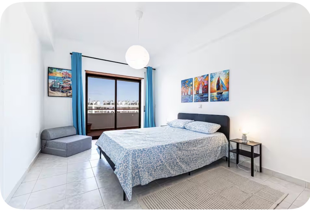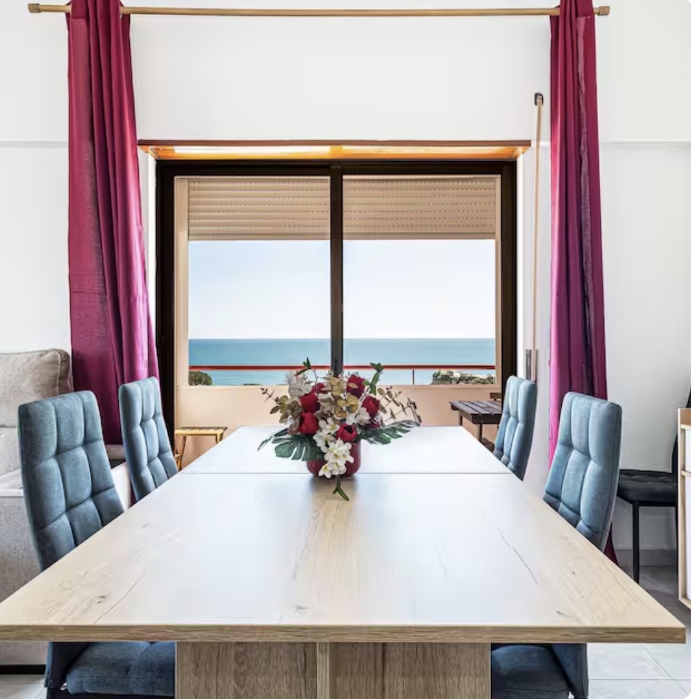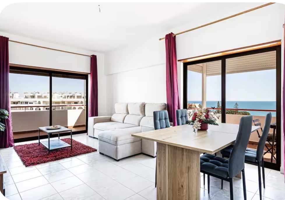 Apartamento T2 à Beira-Mar com Vista Deslumbrante – Senhora da Rocha Acorde com uma vista incrÃvel para o mar em todos os três terraços deste apartamento luminoso e espaçoso T2, localizado mesmo em frente à Capela de Senhora da Rocha. Perfeito para umas férias relaxantes na praia! O Espaço: • 2 quartos acolhedores com camas de casal • Sofá-cama na sala (acomoda até 5 pessoas) • 2 casas de banho com duche • Cozinha totalmente equipada e sala de estar confortável Acesso e Comodidades: • Piscina do condomÃnio com animação e música ao vivo no verão • A poucos passos da praia e restaurantes locais • Terraços com vistas deslumbrantes – perfeitos para o café da manhã ou um pôr do sol Aluguer de Inverno: • Tarifas mensais especiais de Novembro a Março (despesas pagas à parte) Reserve já e descubra o charme de Senhora da Rocha – sol, mar e relaxamento esperam por si!